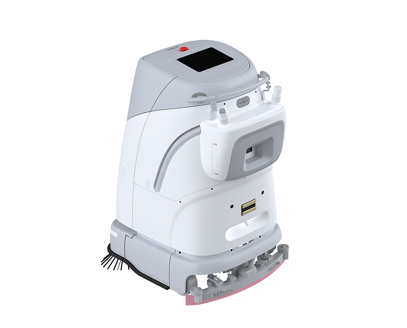 The autonomous floor scrubber SC 50 has a roller brush with a ground pressure of 46kg, and the roller brush module is adaptively raised to solve light and heavy stains in one machine. It also meets the requirements of rapid replacement of the floor scrubber and dust pusher modules and the upgrade of the dust pusher module, eliminating the need for manual intervention during the entire cleaning process.